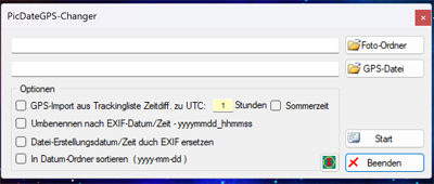 Unter GPS-Import muss noch die Abweichung zu UTC (Für MEZ=1) und ob Sommerzeit gilt oder nicht