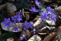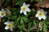 | Buschwindröschen und Leberblümchen blühen im Wald bei Rugeshus. |