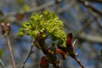 | Der Spitz-Ahorn zeigt seine Blüten. |